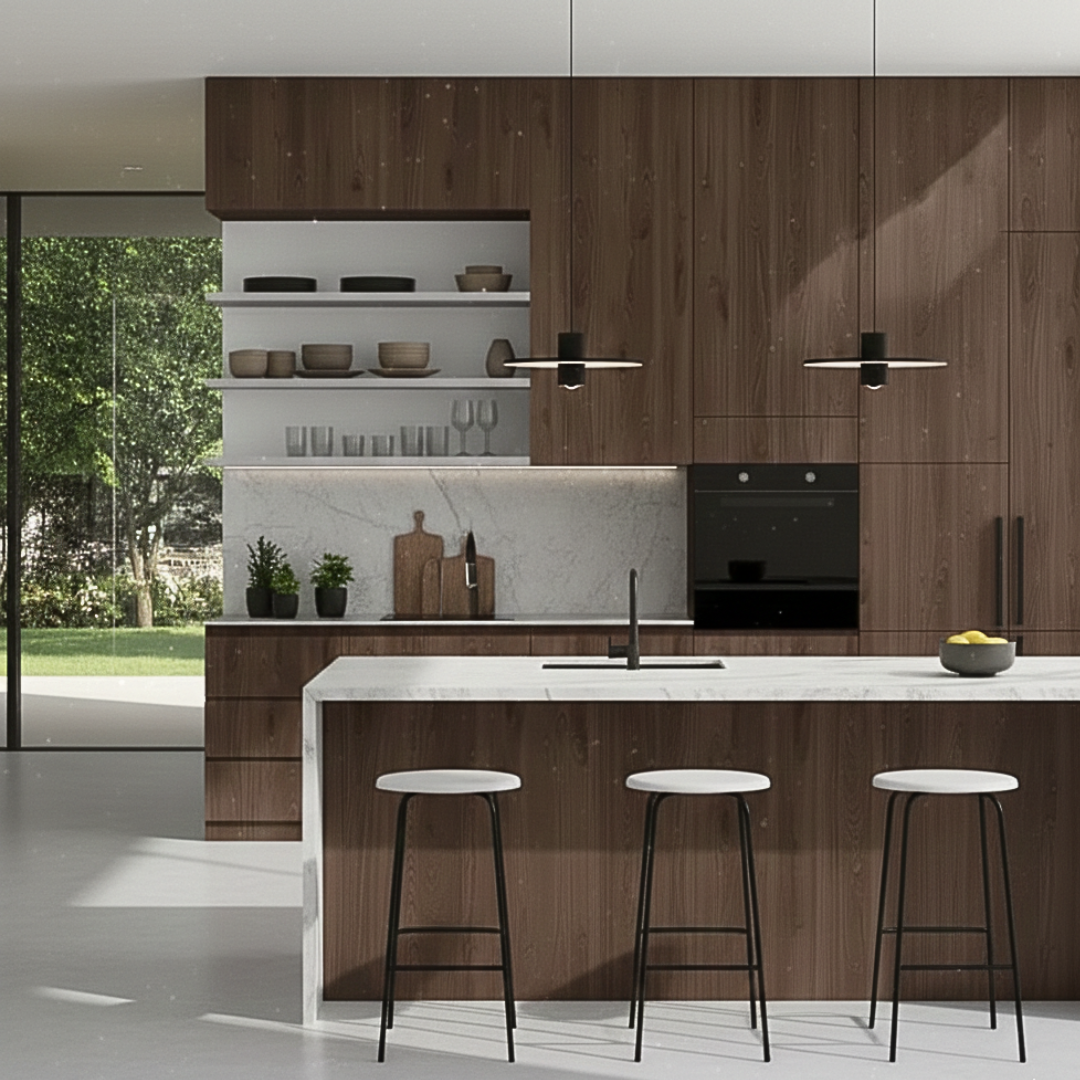 - Keukenfronten: Strakke deurtjes en panelen.